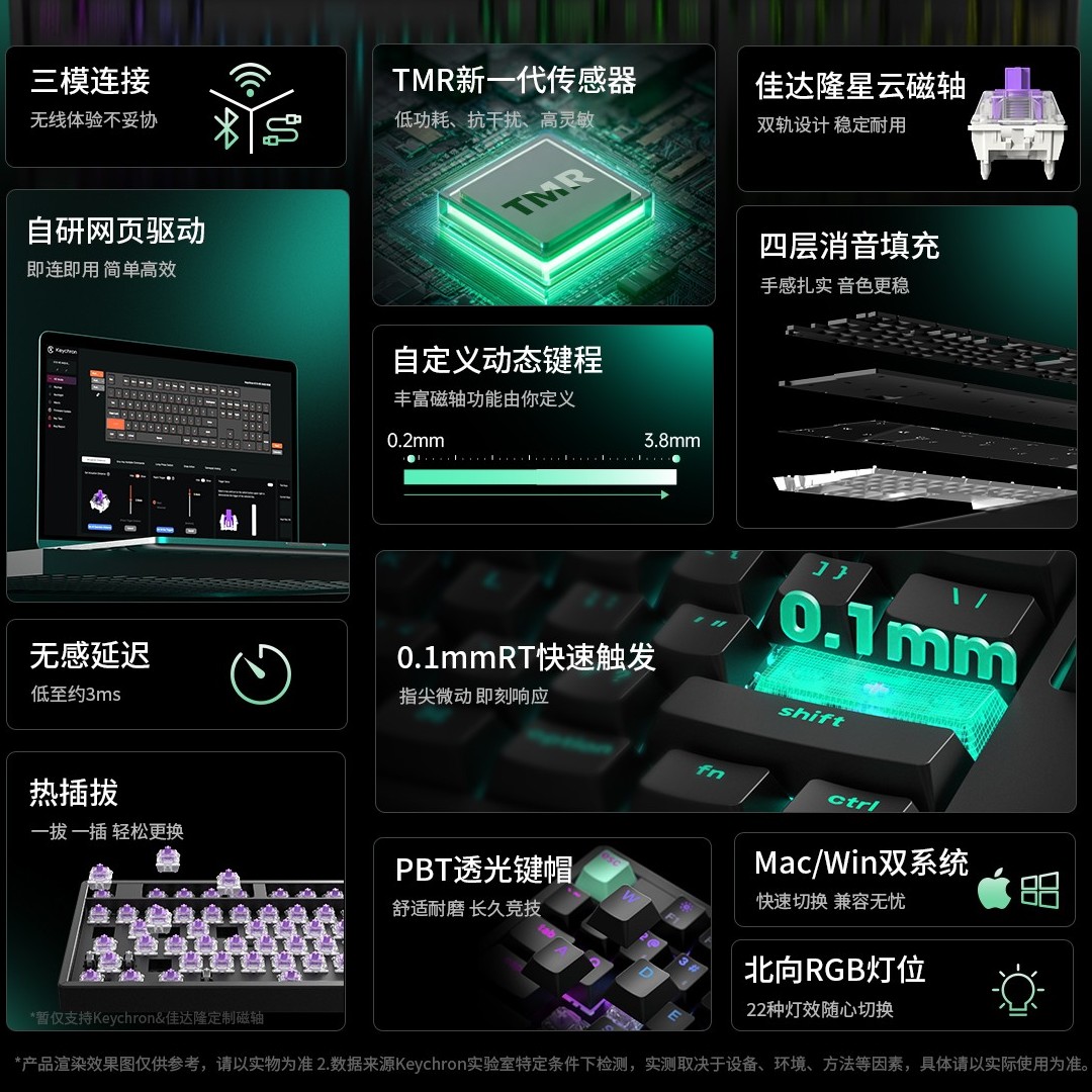 104 键全配列三模 TMR 磁轴,Keychron 推出 K10 HE 机械键盘